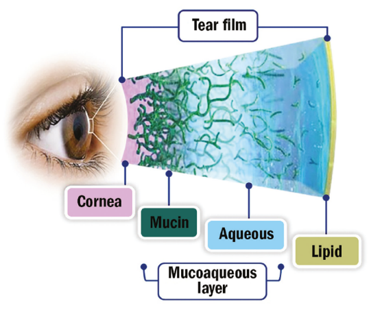 The three mucoaqueous layers protects and lubricates the eye.